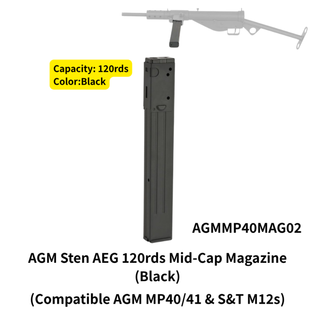 AGM Sten AEG 120rds Mid-Cap Magazine (Black) Compatible AGM MP40/41 & S&T M12s