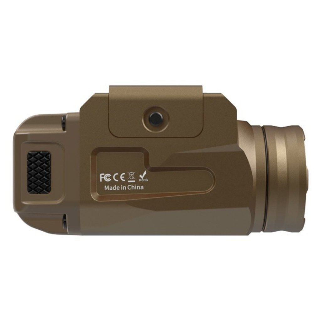 3) Ambidextrous switches on both sides control the light and allow for one-handed operation.