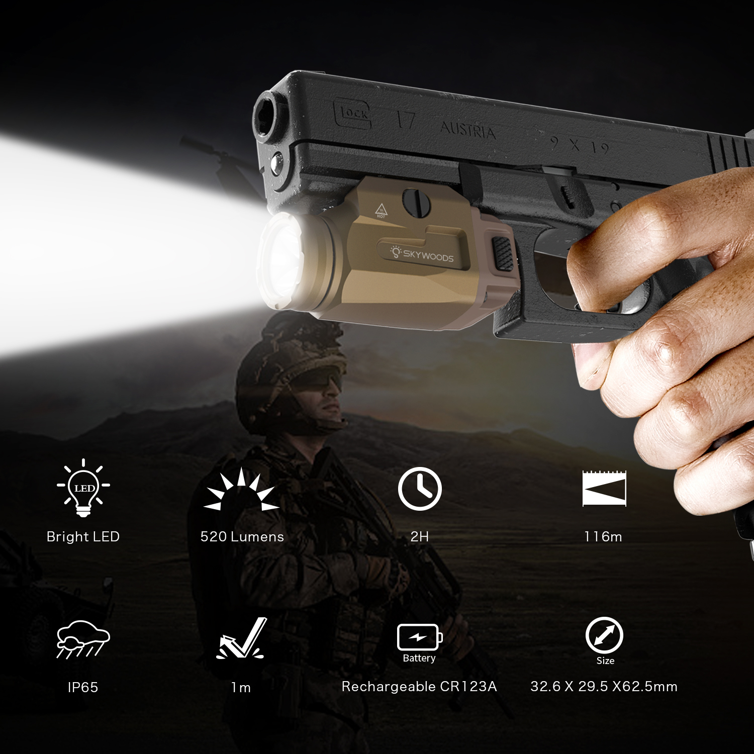 6) Use: Widely used as a tactical flashlight.