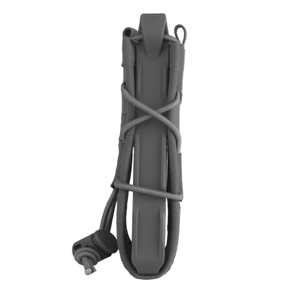 The magazine retention force can be adjusted by changing the tightness of the bungee cord.