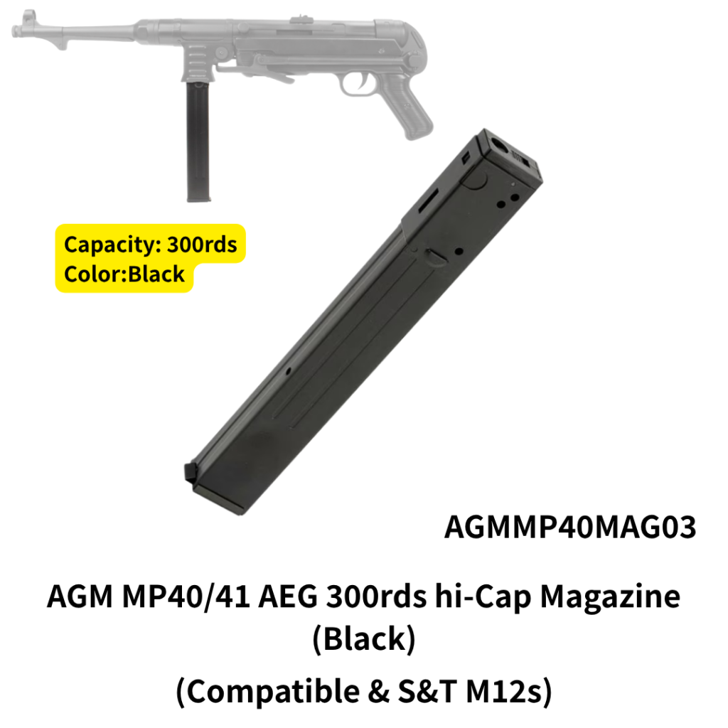 A 300-round spring-driven high-capacity magazine compatible with S&T Beretta M12S electric gun and AGM MP40 series.