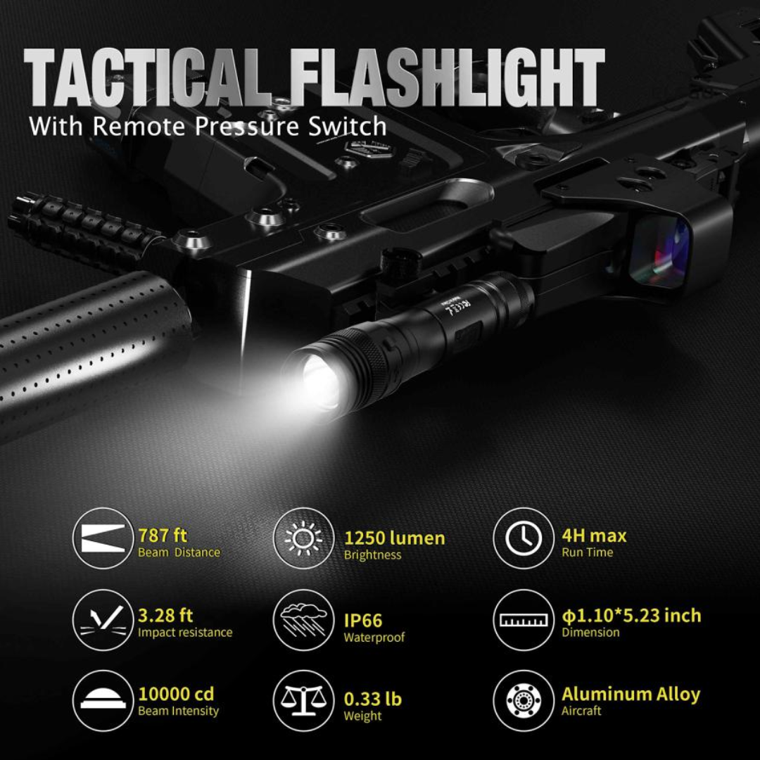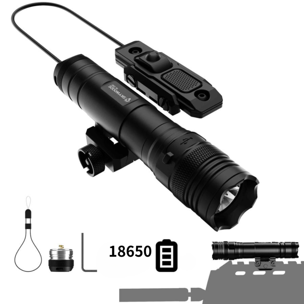 4)The detachable offset mount and the included lanyard allow this tactical flashlight to be used as a sturdy and durable torch in addition to being attached to the gun.