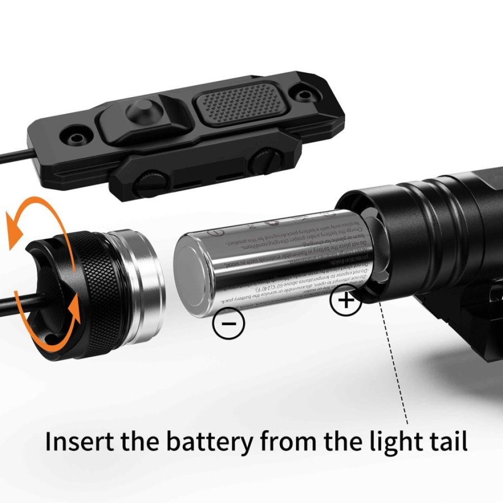 1. Tail Switch: Press to turn on the light. High Mode ->Strobe ->Close. It can be operated with one hand.