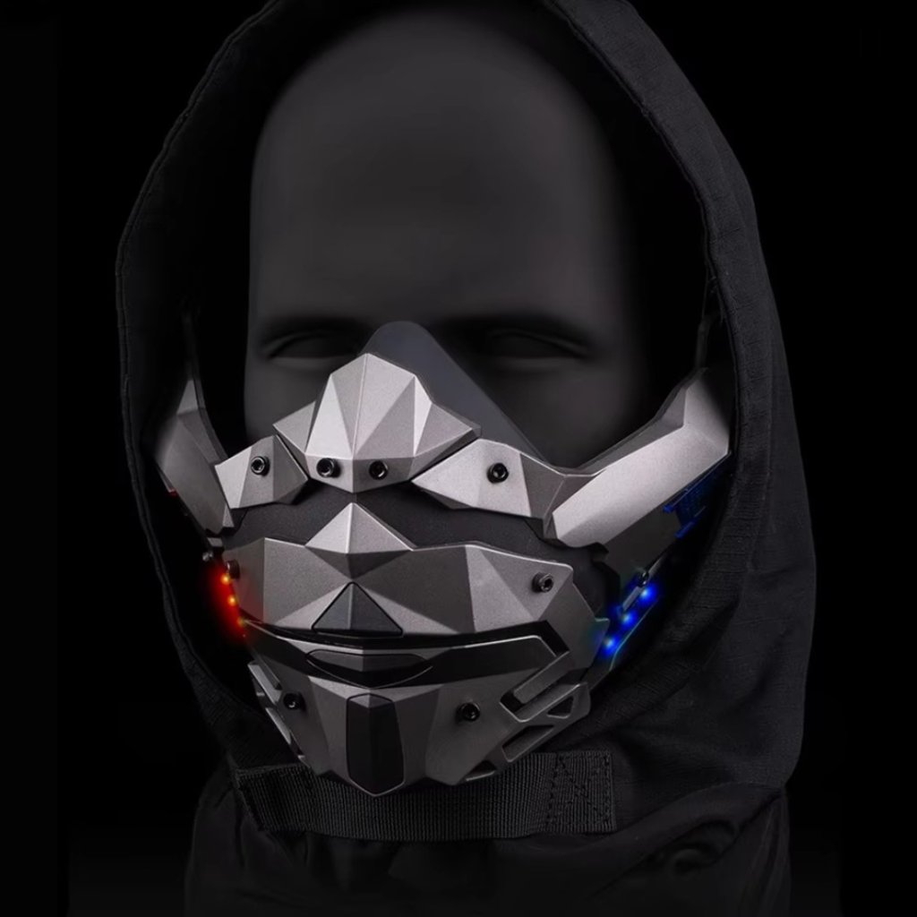 【Multiple Modes】The lights on both sides of mask can be adjusted to dfierent lightng modes, such as steady on mode, streamer mode, Flash mode, streamer+fash mode. Long press the switch on both sides for2 seconds to turn on the light; tap to switch the light mode, and long press for2 seconds to turn off the ight.