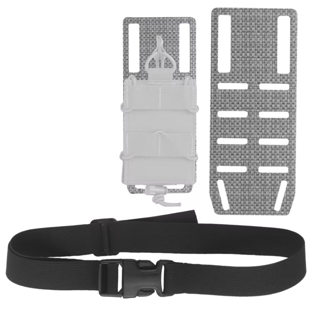 The Mid-Ride Reload Adapter is designed to lower MOLLE speed reload pouches out of the way of side armor or cummerbund mounted equipment. The height also aids in smoother and faster draws.
