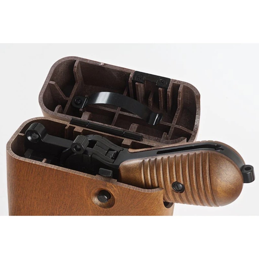 • The stock is easily detached with a sliding locking lever. Once removed, you can open the rear end of the stock and insert the pistol for safe storage.