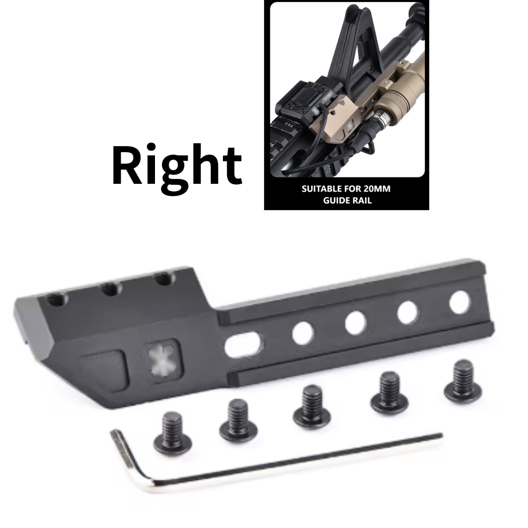 "RIGHT" allows for offset to the right side of the handguard, while "LEFT" allows for offset to the left side.