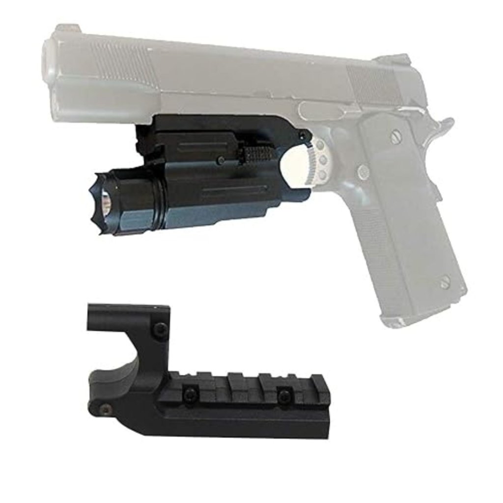 Update your 1911 to the 21st century with the 1911 Universal Picatinny Rail Adapter. An elegant solution to pistols that lack a frame accessory rail, the DLP Tactical Universal Picatinny Rail Adapter mounts quickly to your 1911 trigger guard with no modifications needed. Seamlessly integrates with the ergonomics of your pistol, and allows you to attach any number of rail mounted lights, lasers, or accessories to your pistol.  reinforced polymer construction is ultra light weight, stronger than steel and is non-marring so it won’t scratch your finish.