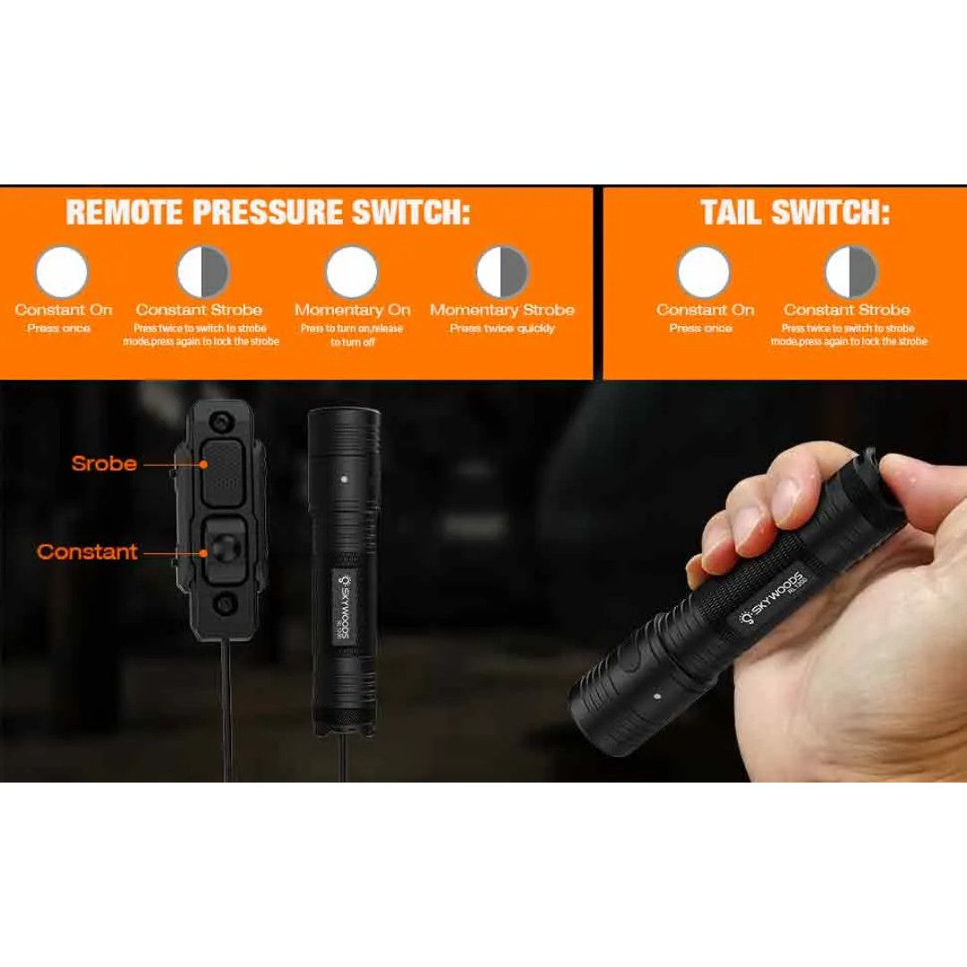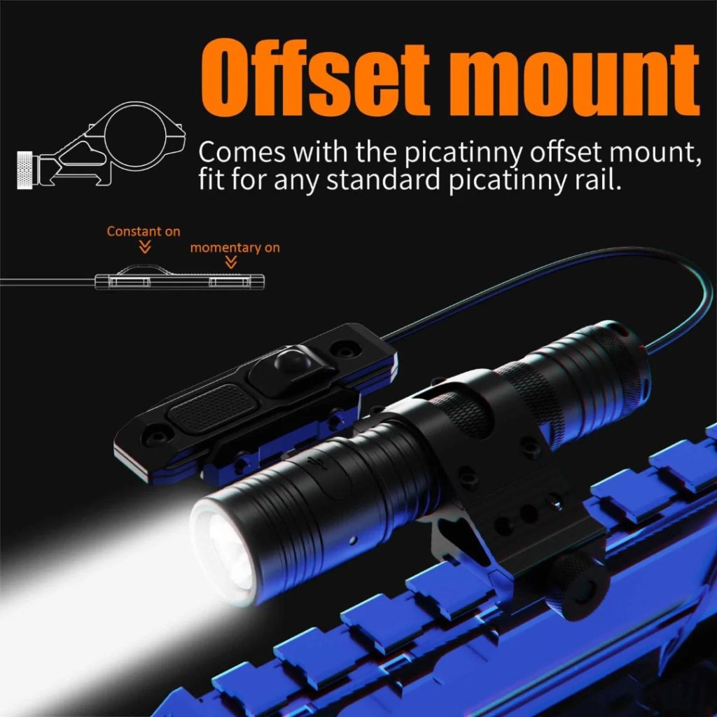 4) With a removable offset mount and attached straps, this tactical flashlight can be used as a sturdy and durable torch in addition to attaching to your gun.