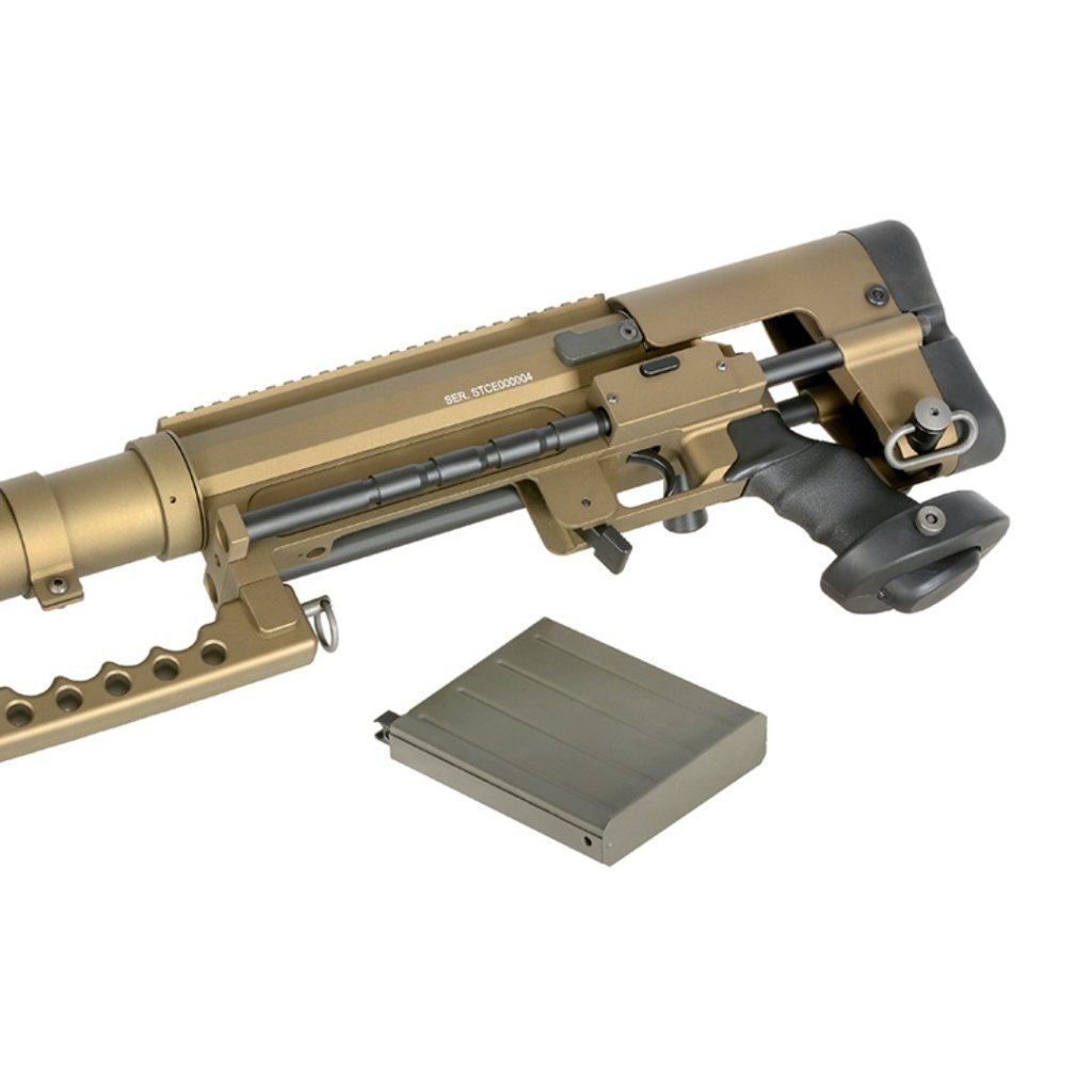 If size matters to you, the ST200 will be right up your street! This absolutely massive Sniper Rifle replica is patterned after the real steel Cheytac M-200 Intervention rifle chambered in the whopping .408 CheyTac cartridge, offering better accuracy and range than even the Barrett M82! This rifle has a special place in all our hearts thanks to its starring role in the movie Shooter(2007), alongside Mark Wahlberg.