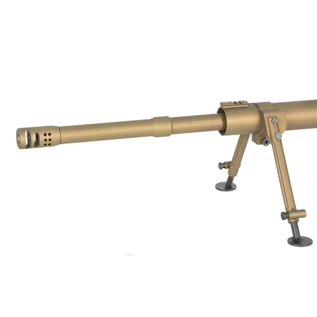 Make no mistake, this rifle is absolutely huge and very, very heavy; tipping the scales at a massive 7KG unloaded and without a scope, and measuring in at 1.4 meters fully deployed. You have to be a special kind of Airsofter to run one of these in a skirmish, but if you have what it takes, here is your chance!