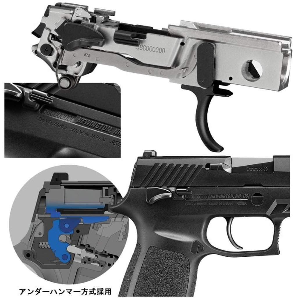 The P320 handgun features a modular system that allows it to be reconfigured into different calibers and sizes by combining barrels, slides, and other components, centered around the Fire Control Unit (FCU), which unitizes key operational components like the trigger and hammer. Now, a full-size version of this gun has been added to the gas blowback series! While maintaining a faithful reproduction of the exterior and FCU, this gun also features an under-hammer mechanism for precise operation.