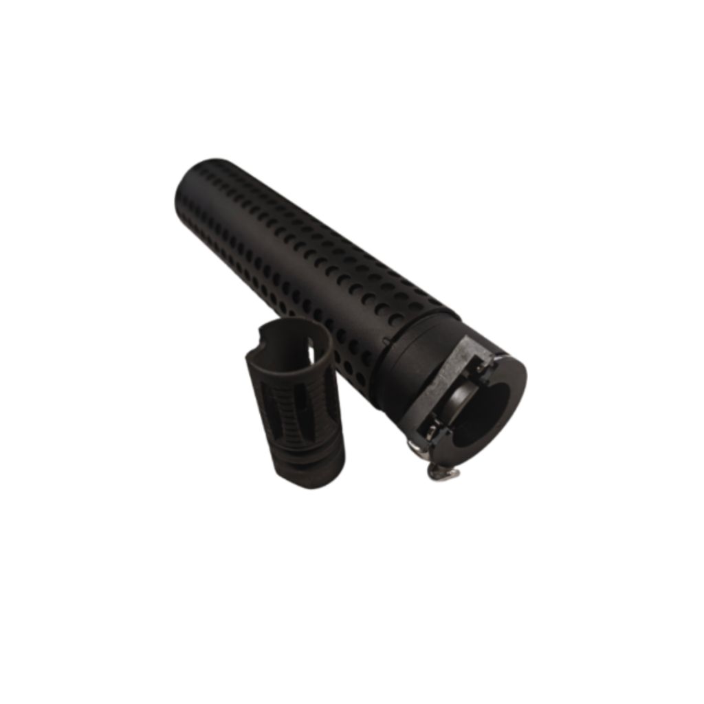 ● Materials: (Silencer) CNC aluminum alloy with foam insert, (Flash hider) steel