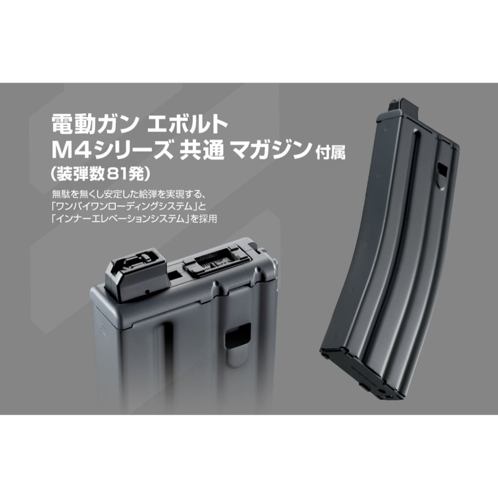 Magazine features a steel-pressed outer shell and holds 81 rounds, specially designed for the Evolt M4 series.