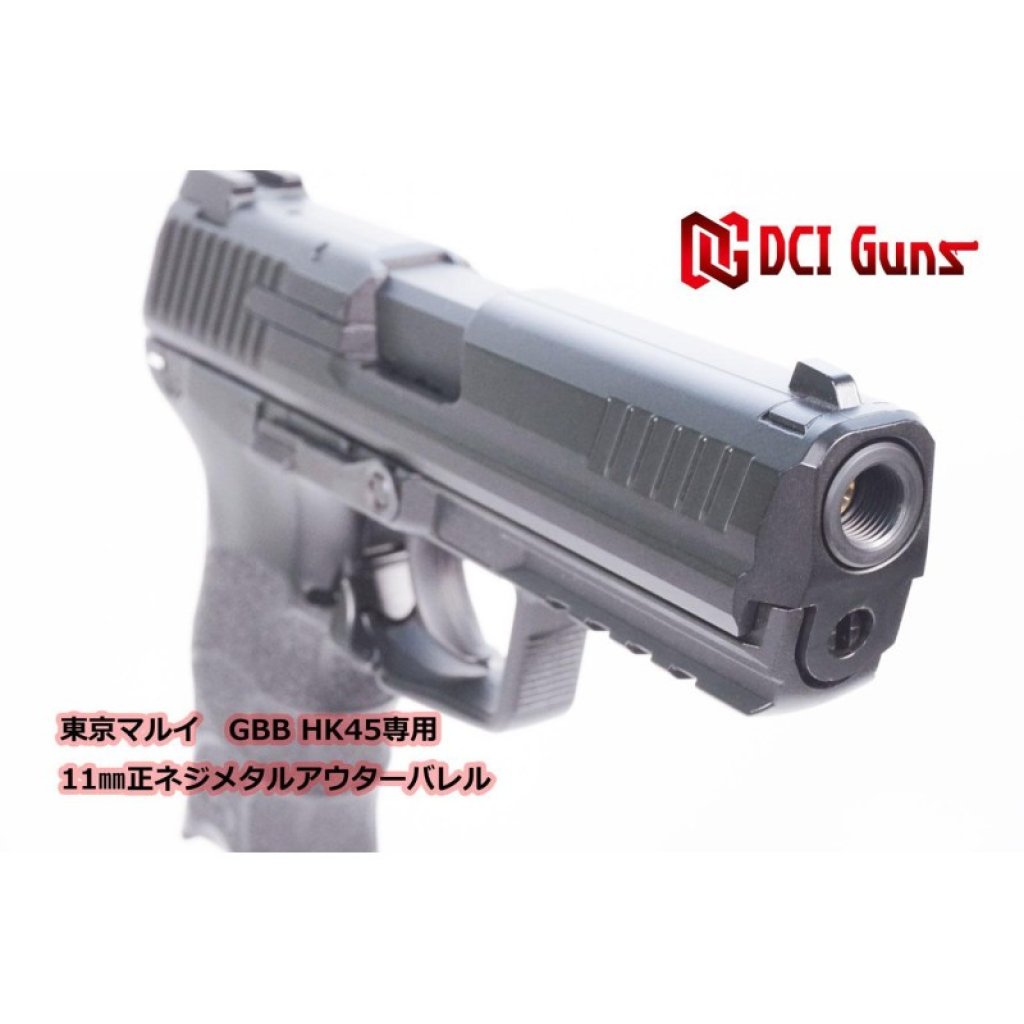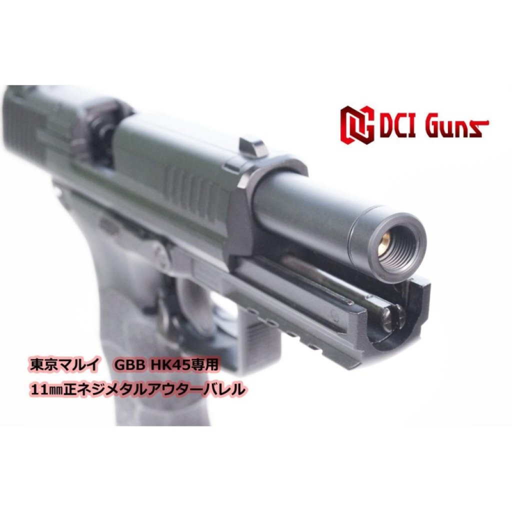 11mm inner thread / aluminum outer barrel for Tokyo Marui HK45 GBB by DCI GUNS.
