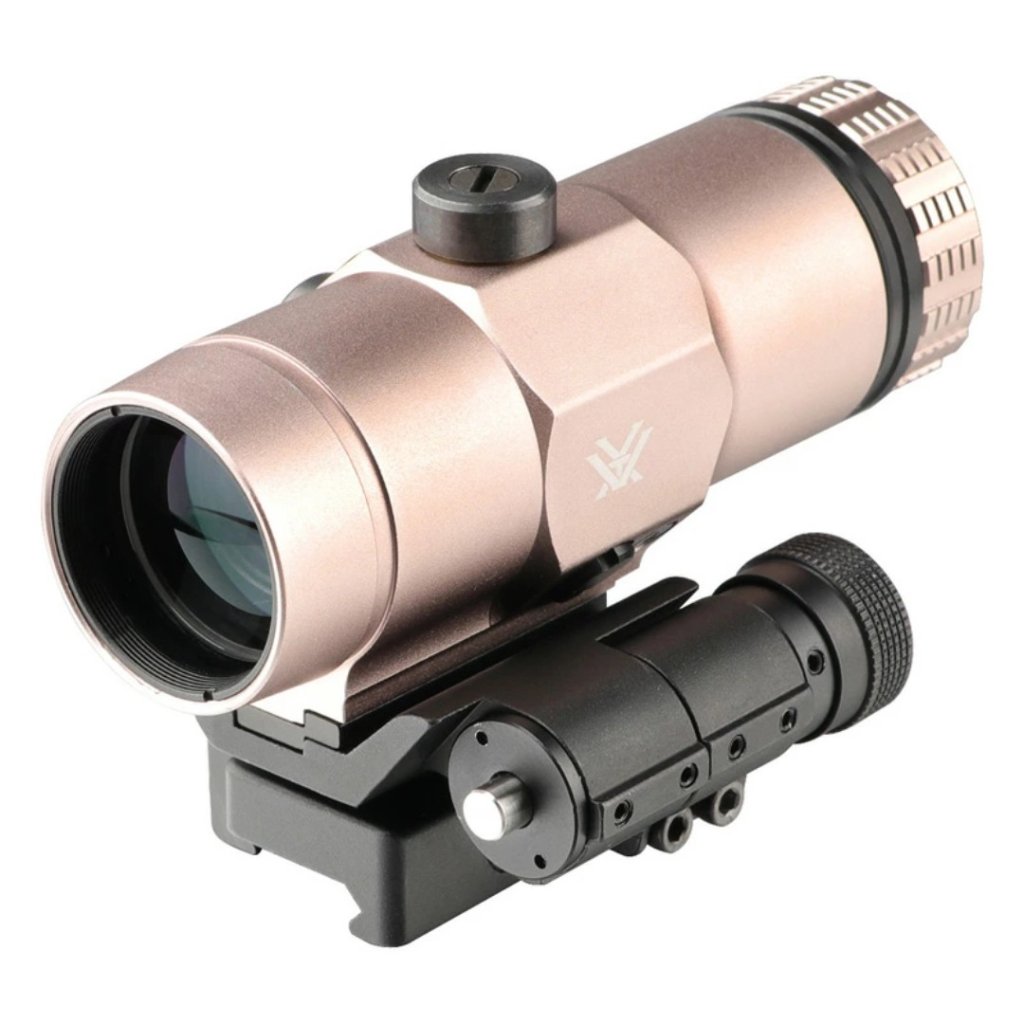 This is a VMX-3T type magnifier that can be used in conjunction with the UH-1 dot sight to quickly switch between 3x and 1x magnification. The flip mount is push-button collapsible, allowing tactical shooting depending on the distance of the target.